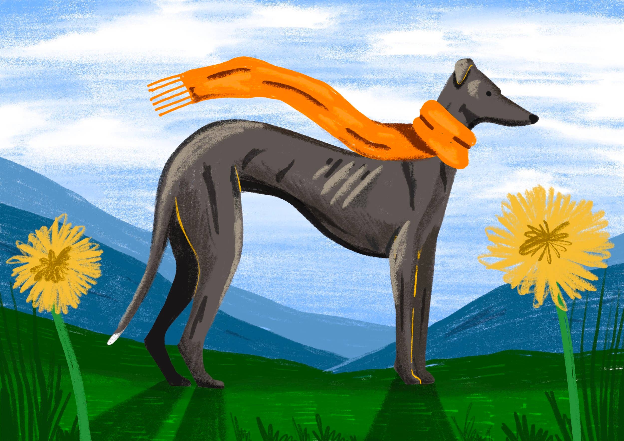 Springtime Greyhound Print by Irish Artist Cathy Hogan